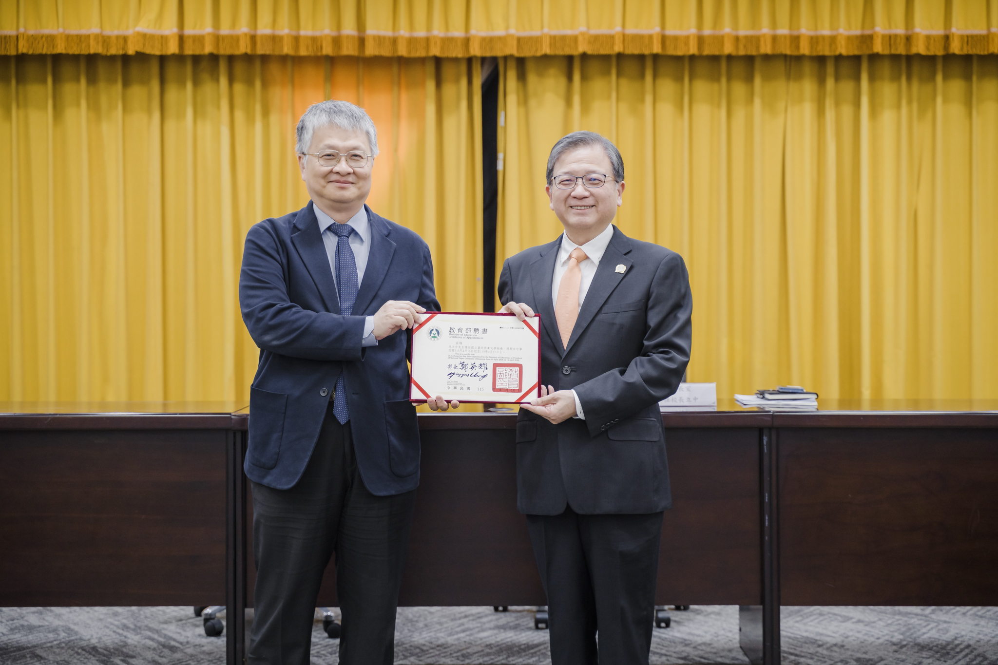 115年4月16日任立中校長續任典禮,由教育部政務次長劉國偉頒授聘書。